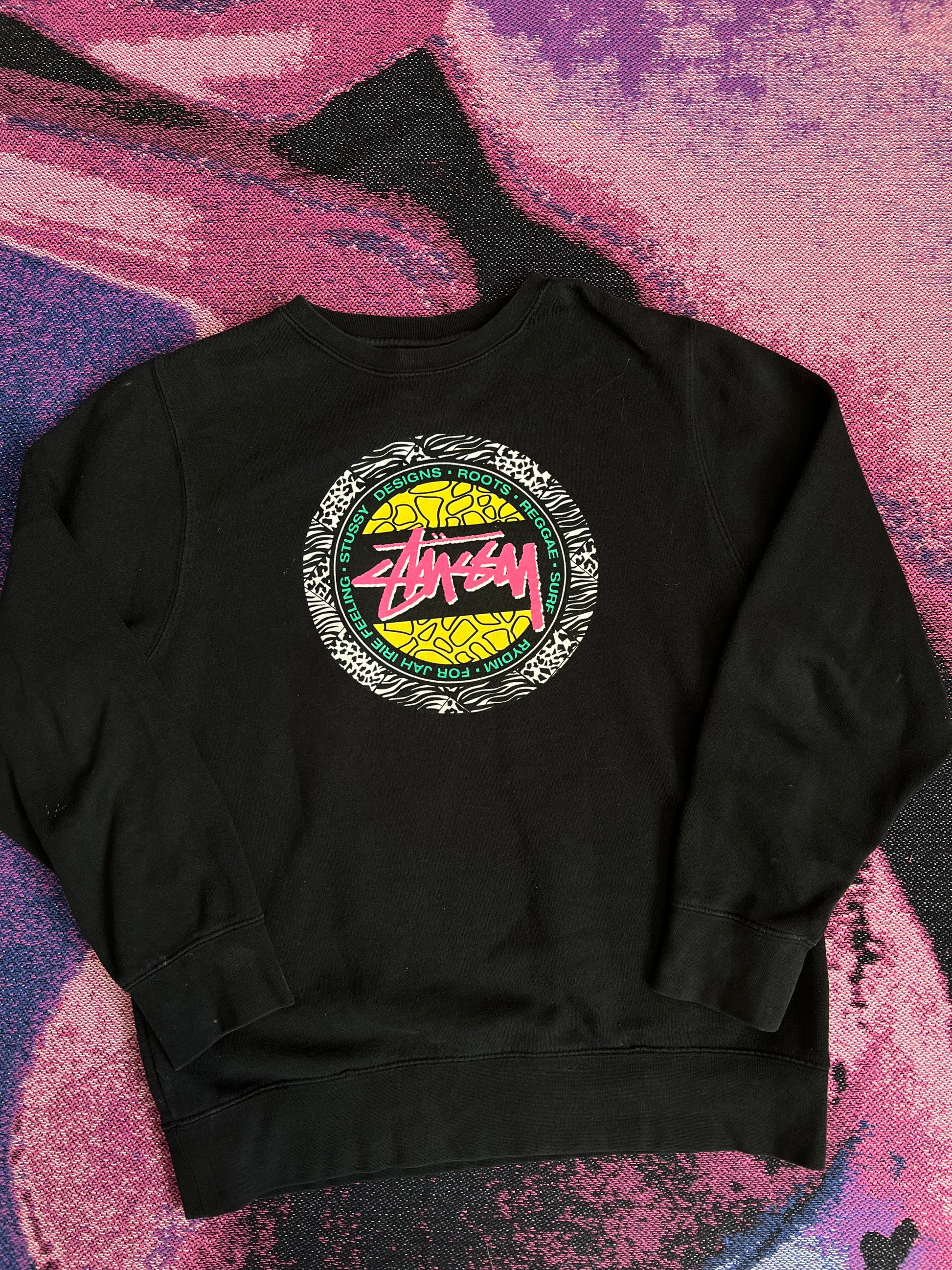 Stussy Rasta Print Crewneck Black S